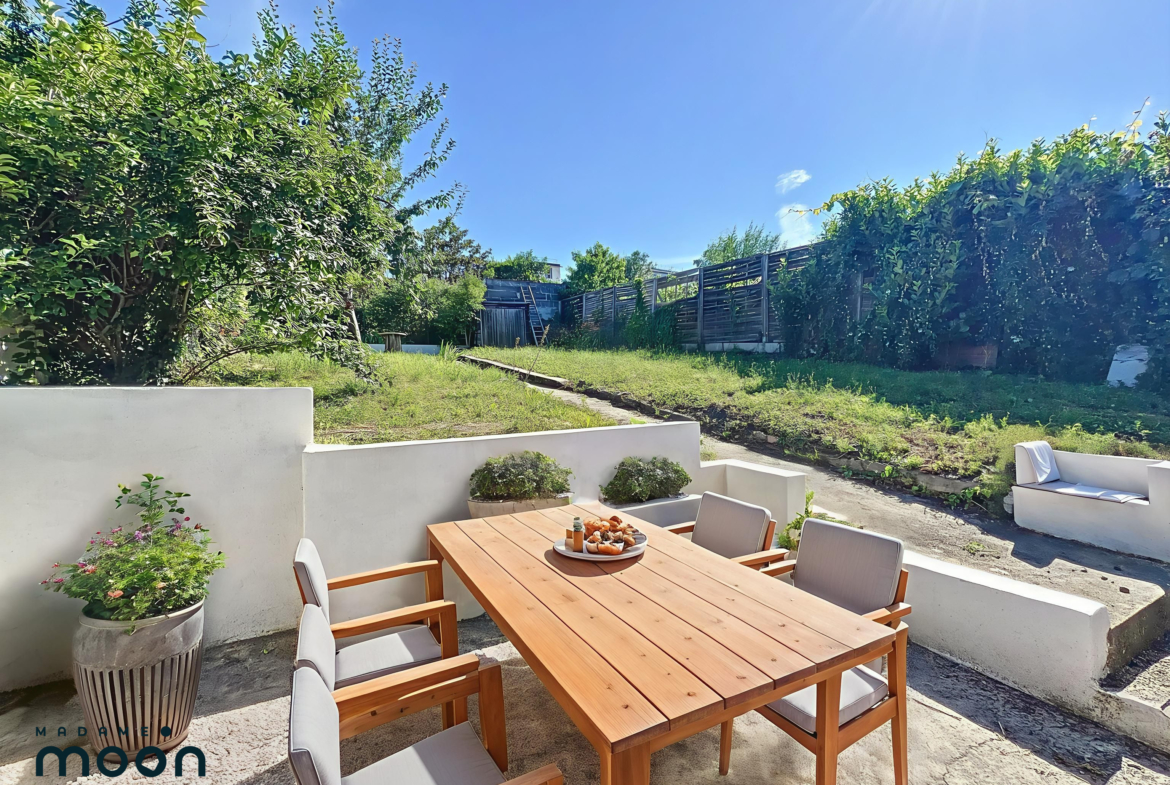 Aux beaux jours, vous apprécierez vos déjeuners en famille ou entre amis à l’abri des regards sur une terrasse idéalement exposée. Un jardin clos et arboré situé à l’arrière de la maison vous apportera douceur, quiétude et sérénité.